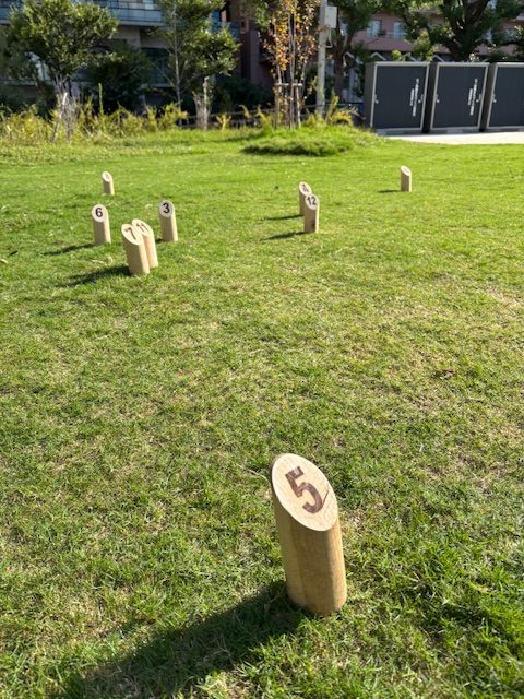 昨年リニューアルした磯上公園の芝生広場で、モルックを楽しみました。